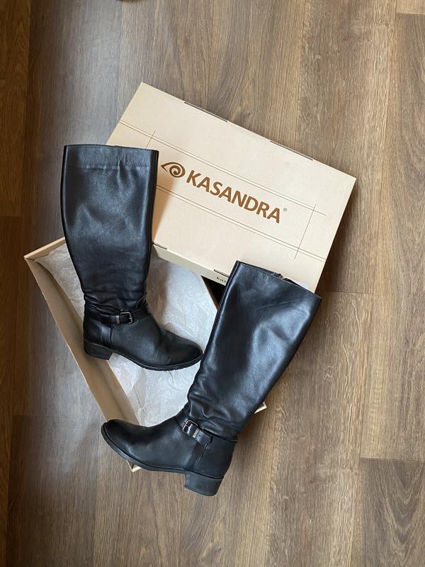 Жіночі зимові чоботи від бренду KASANDRA з натуральної шкіри. Особливості: • Матеріал: натуральна чорна шкіра • Утеплення: натуральне хутро та байка всередині • Розміри: 38, 38,5 (устілка 24 см) • Підошва: шкіряна зовні • Декоративні ремінці з пряжками • Високе халявка для захисту від снігу Ідеальні для холодної погоди завдяки натуральному хутру та якісній шкірі. Класичний чорний колір поєднується з будь-яким зимовим гардеробом. Зручна посадка та надійний захист від морозу.