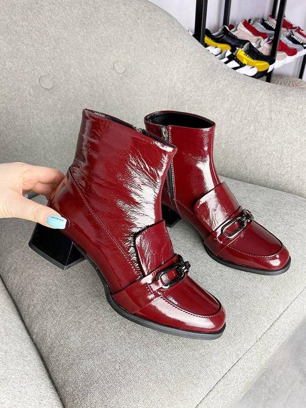 в наличии и под заказ код 3912 Демисезонные ботиночки Натуральная лаковая кожа, замша, кожа подклад - флис сбоку рабочая молния, цвет - ЧЁРНЫЙ, сакура, бордо высота от пятки 14 см, каблук 4 см очень удобная колодка размеры 36-40 производство Украина,