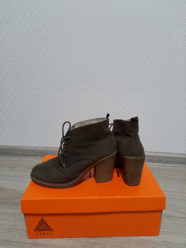 Ботинки из замши на небольшом устойчивом и удобном каблуке. Цвета хаки. Размер 37, по стельке 22,5
