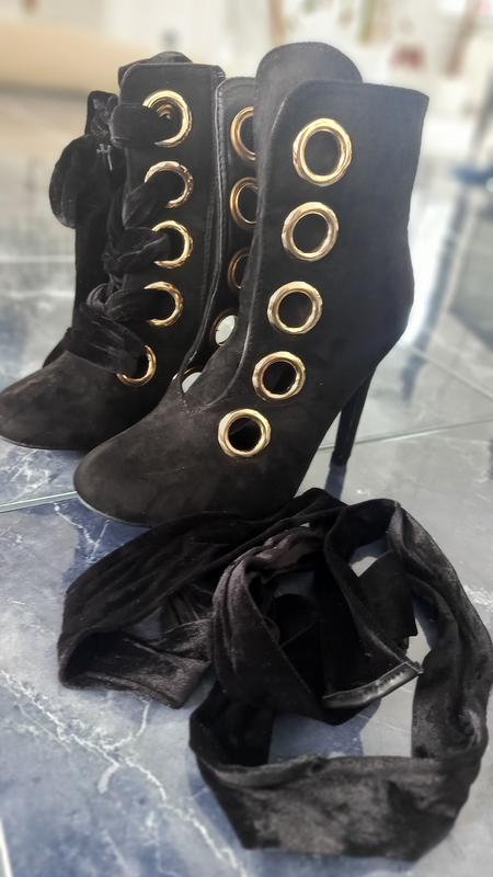 новые красивейшие ботинки из еко замша. очень круто смотрятся, в комплекте обьемный велюровый шнурок, по желанию можно заменить на обычный. 36 размер, стелька 23см. Каблук 10см