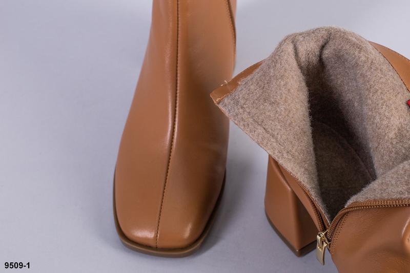Код: 9509-1 Женские ботильоны Сезон: деми Размеры: 36 - 40 Цвет: карамельный Материал верха: натуральная кожа Внутри: байка Материал подошвы: ТЭП Высота без каблука: 13,5 см Высота каблука: 5,5 см Высота подошвы: 0,7 см Объем в самом верху: 26 см Подходят на узкую по полноте ногу, невысокий подъем Производитель: Украина Цена: 2380 грн