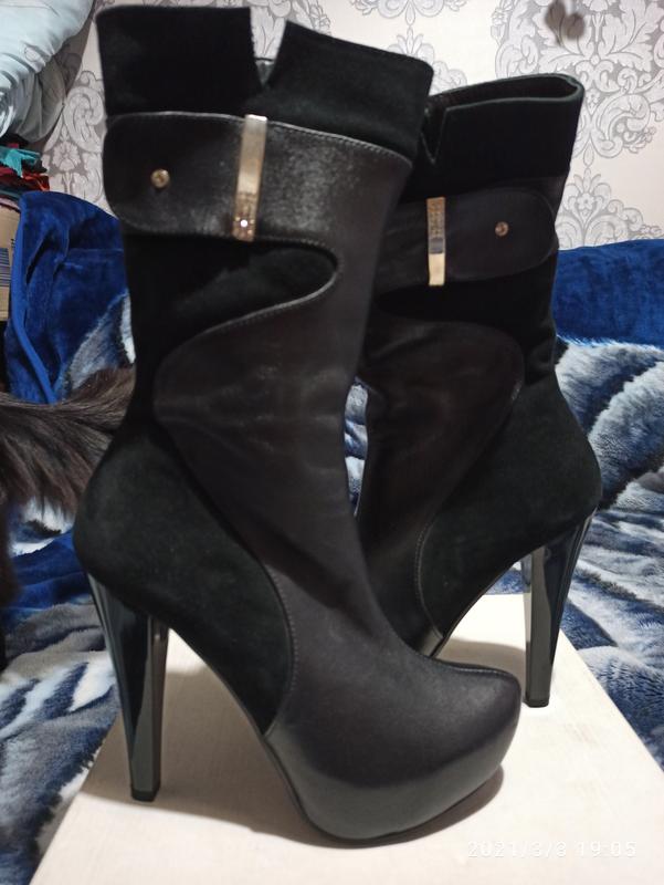 Продам кожаные женские сапоги на высоком каблуке 11см,платформа на носке 3см.Очень удобная и устойчивая колодка.Замша и кожа.Новые,в носке не были