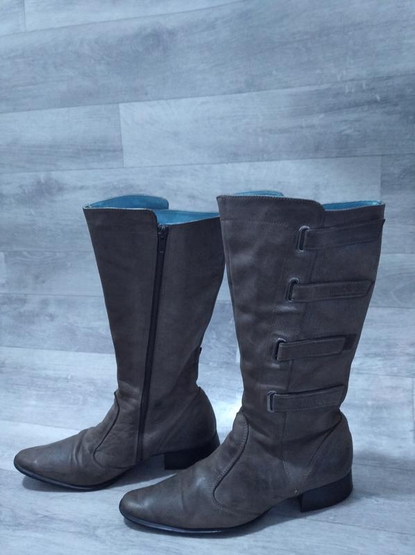 Сапоги женские коричневые. Размер 39. Длина стельки 25-25,5 см, высота каблука 3 см, высота сапога без каблука 33 см, объем голени 18 см.