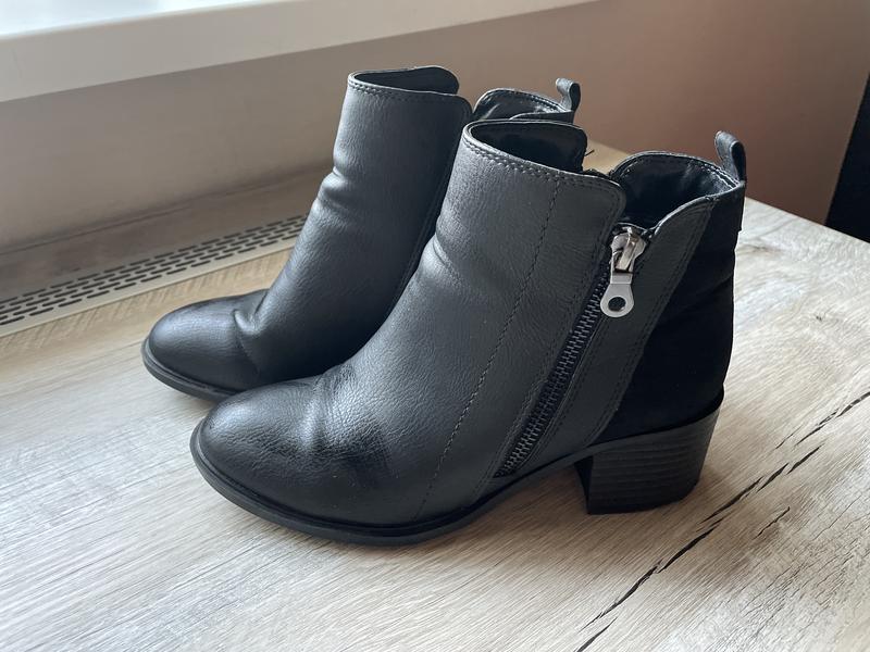 Удобные весенние ботики со вставками из замши на квадратном невысоком каблуке