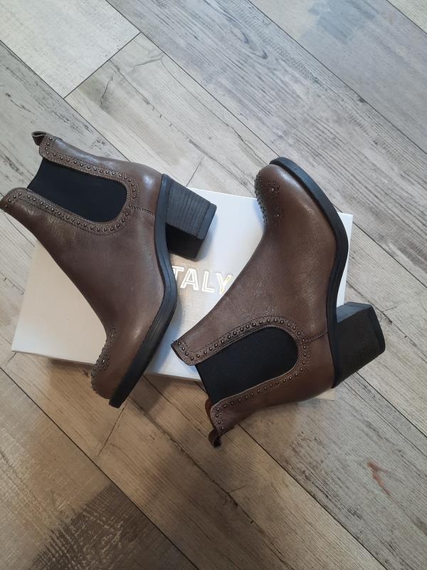 Кожаные ботинки на устойчивом каблуке. Размер 37 (24см)