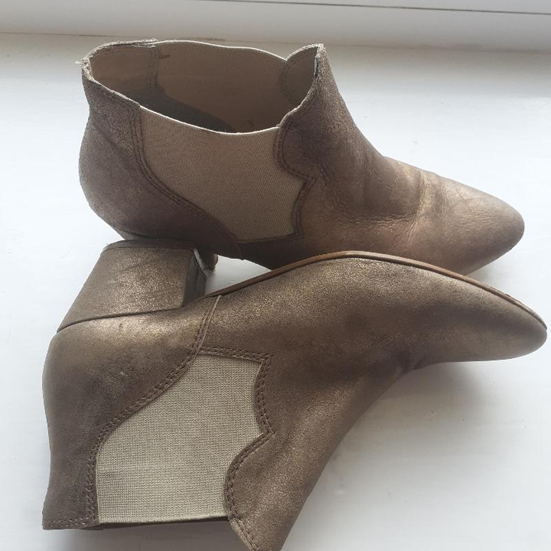 Цвет золото, каблук4,7см удобен в носке на каждый день, внутри зьянов нет, снаружи есть но при носке не видно, по бокам вшиты резинки(не деформированы), материал очень мягкий так что могут быть для проблемных ножек! Возможен торг!