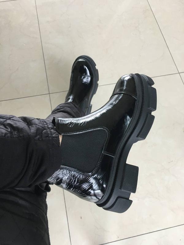 БОТИНКИ ЧЕЛСІ Колір чорний Матеріал: натуральний лак Сезонність: демісезонні Код товару: 29606 36.39.40.в наявності. ОПИС ХАРАКТЕРИСТИКИ Черевики челсі без блискавки на тракторній підошві. Висота підошва ззаду: 4,5 см. Спереду: 2,5 см. Висота від п'яти: 11 см. Розмірна сітка: 36-23,5 37-24 38-24,5 39-25 см.
