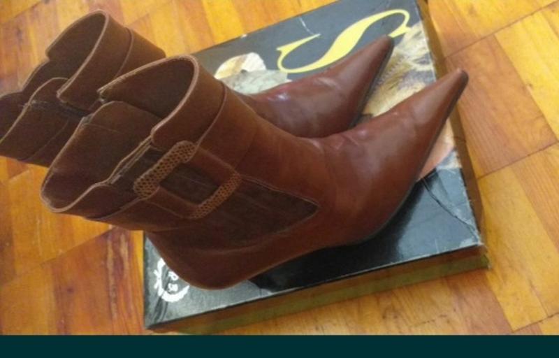 Ботинки кожа, очень теплые. Носились мало , набойки стерлись учла в цене.