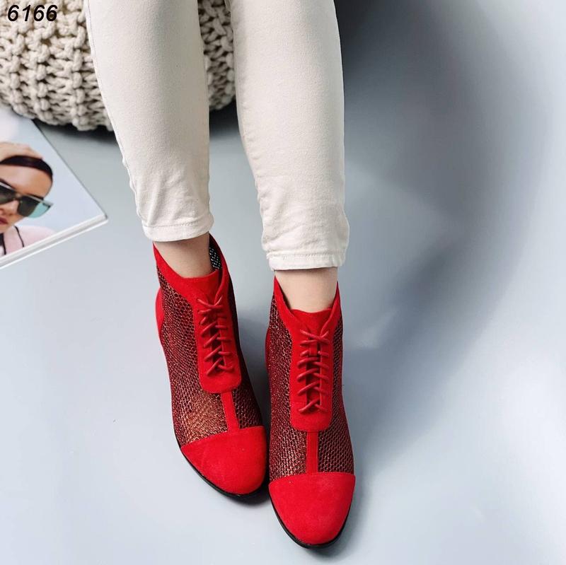 ❣❣❣размеры 38 38 38 39 Код 6166 Летние ботинки Материал эко-замша + сетка Цвет красный Сзади на молнии Высота обуви от пятки 12 см Высота каблука 4,5 см Размерная сетка 36 - 23,5 см 37 - 24,0 см 38 - 24.5 см 39 - 25,0 см 40 - 26,0 см.баш