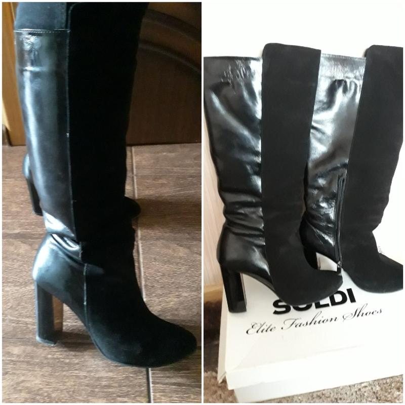Сапоги Soldi комбинированные кожа лак с замшей.Очень красиво смотрятся,удобные,качественные. Размер 39