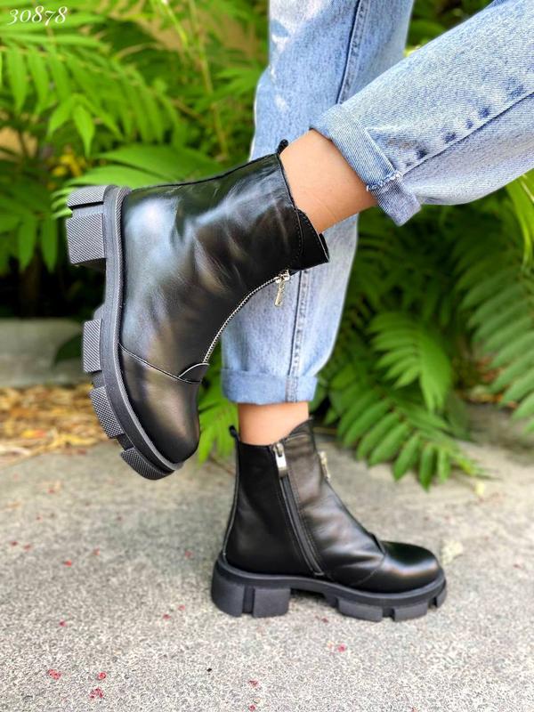 Черевики з блискавкою спереду. утеплені байкою Колір чорний Матеріал: натуральна шкіра Сезонність: демісезонні Код товару: 30878 ▪️Висота підошви спереду: 2,5 см ▪️Висота підошви ззаду: 4,5 см ▪️Висота від п'яти: 13,5 см Розмірна сітка : 36-23,5; 37-24; 38-24,5; 39-25,5; 40 -26 см