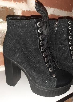 Шикарні черевички осінь - весна. Натуральна шкіра , на влисе. Висота каблука 11 див. регулюється Шнурівкою підйом, і є блискавка. Йдуть розмір в розмір . Одягнені один раз - без дефектів.