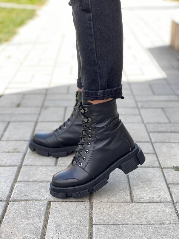 ❤️ НОВИНКА ❤️ Код 398 Ботиночки Solid Цвет: черный Материал: НАТУРАЛЬНАЯ КОЖА Сезон : деми (байка ) Каблук: 4,5 см Размерность: 36-40 ( в размер) 36=23,5 см 37= 24 см 38= 24,5 см 39= 25,5 см 40= 26 см