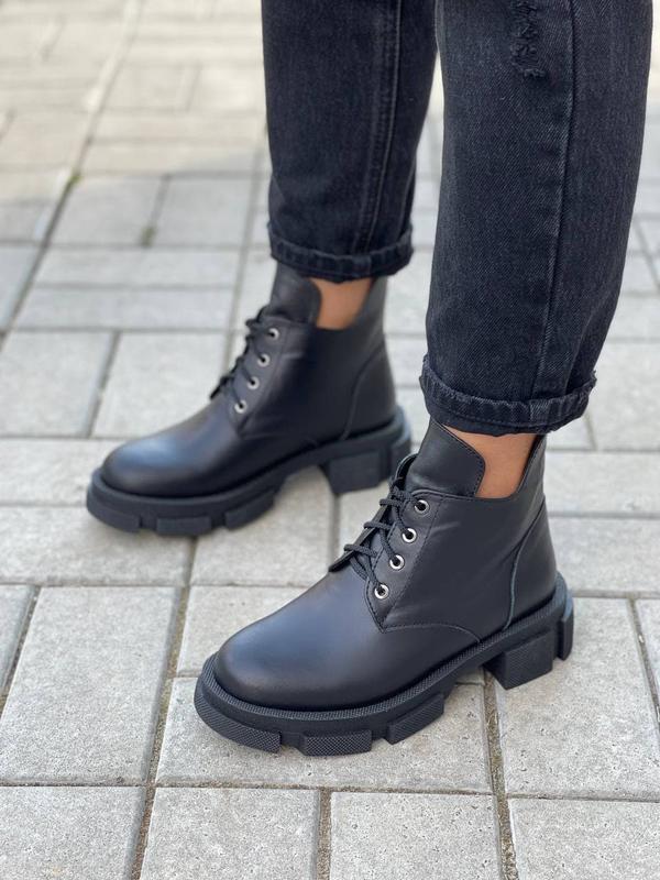 Код 397 Ботиночки Fox Цвет: черный Материал: НАТУРАЛЬНАЯ КОЖА Сезон : деми (байка ) Каблук: 4,5 см Размерность: 36-40 ( в размер) 36=23,5 см 37= 24 см 38= 24,5 см 39= 25,5 см 40= 26 см