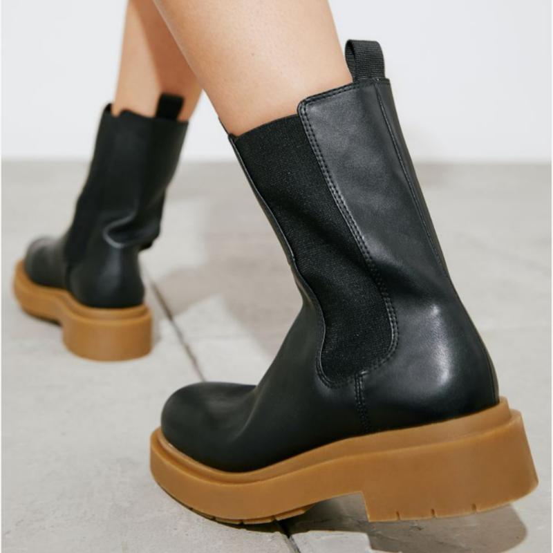 Високі черевики челсі з м'якої штучної шкіри на платформі. Високий халява з гумкою по боках, проходить спереду і ззаду. Сатинова підкладка та устілка з штучної шкіри. Міцна рифлена підошва, висота 5,5 див. Розмір - Модель зростом 180 см / 5'11 дюймів, розмір 39. Верх. Склад: поліуретанові