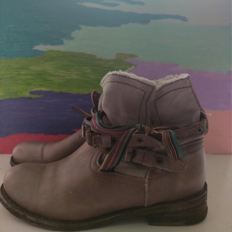 стильные ботинки,кожа в сочетании с мешковиной.по стельке 24,5,но лучше на 24 см.носились мало!