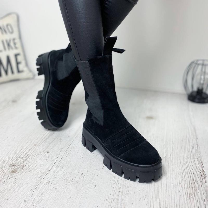 New 💫 ✔️под заказ (Отшив 8 раб.дней,есть налож.платеж по предоплате 200 грн) код 873 Стильные ботинки натуральный замш Подклад на выбор байка/набивной мех высота 21.5 см подошва 6/4 см Цвет:черный 36-23 см 37-23.5 см 38-24 см 39-24.5 см 40-25.5 см