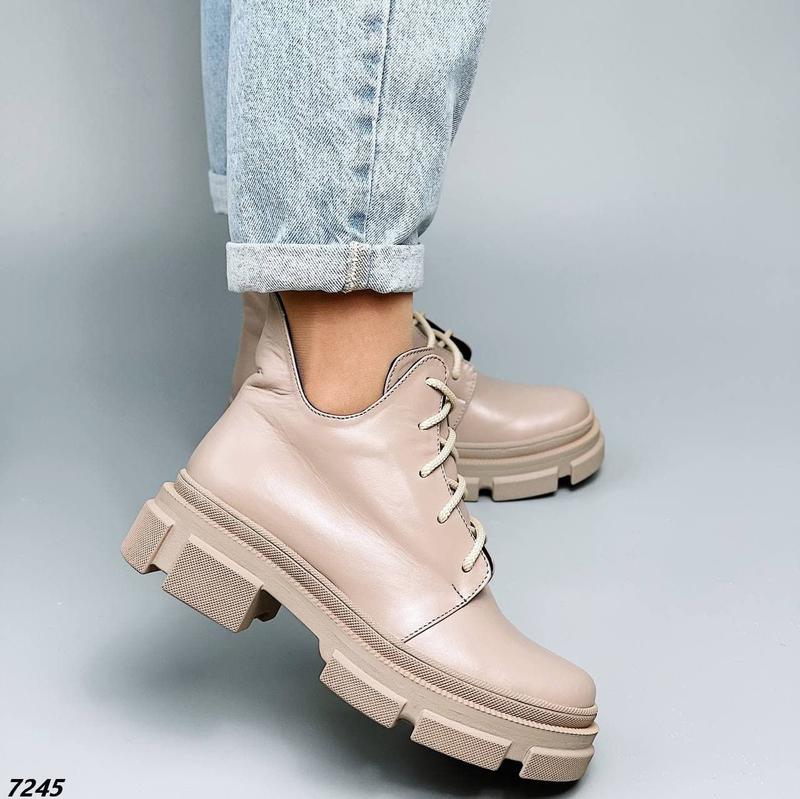 💕💕💕НОВИНКА💕💕💕НОВИНКА💕💕💕НОВИНКА 💕💕💕 Код 7245 Ботинки Сезон Деми 💣Материал натуральная кожа Внутри флис Цвет капучино Высота подошвы 5 см Впереди 3,5 см Высота от пятки 11,5 см На шнуровке Производитель Украина 💥Цена 1040 грн Размерная сетка: 36 - 23,5 см 37 - 24,0 см 38 - 24.5 см 39 - 25,0 см 40 - 25,5 см 41 - 26,0 см