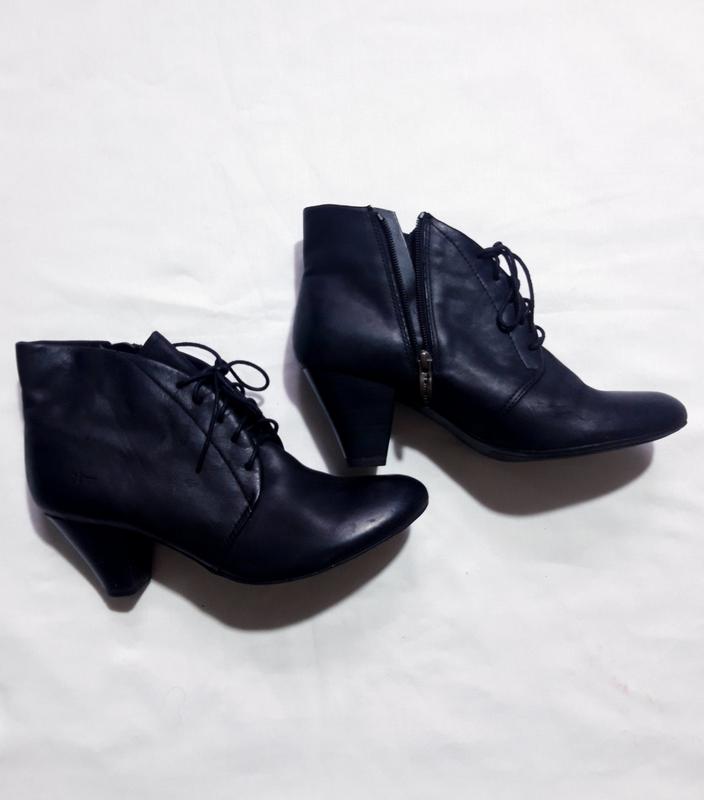 Дуже симпатичні черевички на шнурочках і блискавки. Шкіра, м'які, стійкий набірний каблук. Висота каблука 6. 5 см, ширина підошви в самому широкому місці 8 см, довжина устілки 26, 7 див. На вузьку або середню ніжку. Стан ідеальний.