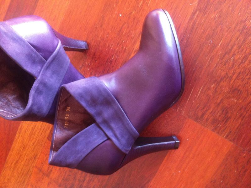 Ботильоны женские , чистая кожа с замшевой отделкой . Цвет боклажана. Каблук устойчивый - 10,5 см. Новые.
