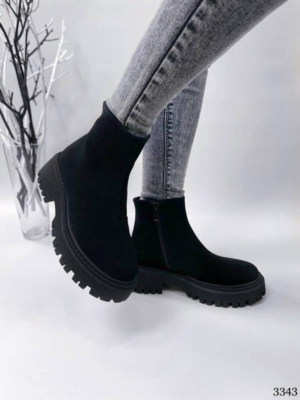 ❣️🌿новинка 🌿❣️ уже на складе ✔️ Ботинки женские деми Код: 3343 Цвет: черный Материал верха: натуральная замша Высота от пятки 12см Подклад: байка Застежка: молния с внутренней стороны Подошва ПВХ: 4-6см Пр-во: Украина В размер Размерный ряд с 36 по 40р. 36р. - 23,5см 37р. - 24см 38р. - 24,5см 39р. - 25,5см 40р. - 26см
