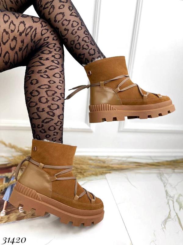 ⭐️ Люкс качество⭐️ Зимние ботинки на шнуровке❤️ Цвет: коричневый Материал: натуральная замша Сезонность: зима ▪️ Высота подошвы сзади:5см ▪️Высота спереди:4см ▪️Высота изделия от пятки:11,5см Размерная сетка : 36-23,5; 37-24; 38-24,5; 39-25,5; 40-26см Цена 1550грн