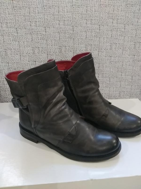 черевики шкіряні,темно сірого кольору,без дефектів,збоку є замок.В середині шкіра+ тканина,Шкіра мягенька.Довжина стельки 25см