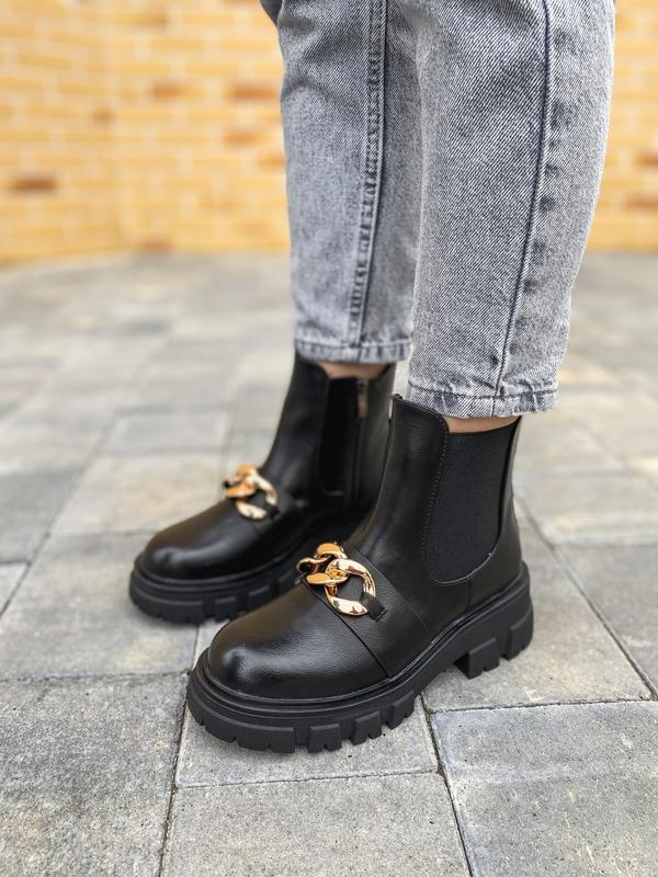 Новинка в наявності❤️ 38 р - 24,5 см 39р - 25см 40р - 25,5см 41р - 26см код 540 Черевики Матеріал: еко шкіра + текстиль Сезон: осінь, всередині текстиль. Підошва: пвх Висота платформи: 4 см. Висота каблука: 5,5 см. Колір: чорний