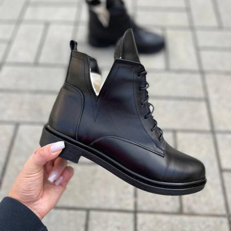 Ботинки женские зима Код 3360 Цвет: черный Материал верха: натуральная кожа Высота от пятки 11,5см Подклад полушерсть70/30 Застежка: шнуровка Каблук: 2,5см Фабричная коробка Пр-во: Украина В размер Размерный ряд с 36 по 40р. 36р. - 23,5см 37р. - 24 см 38р. - 24,5см 39р. - 25,5 см 40р. - 26см