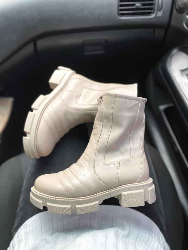 В наявності 38 р - 24,5 см❤️ код 599 Черевики Матеріал: натуральна шкіра Сезон: зима, всередині хутро Підошва: піна Висота каблука: 5 см. Висота платформи: 3,5см Колір: бежевий