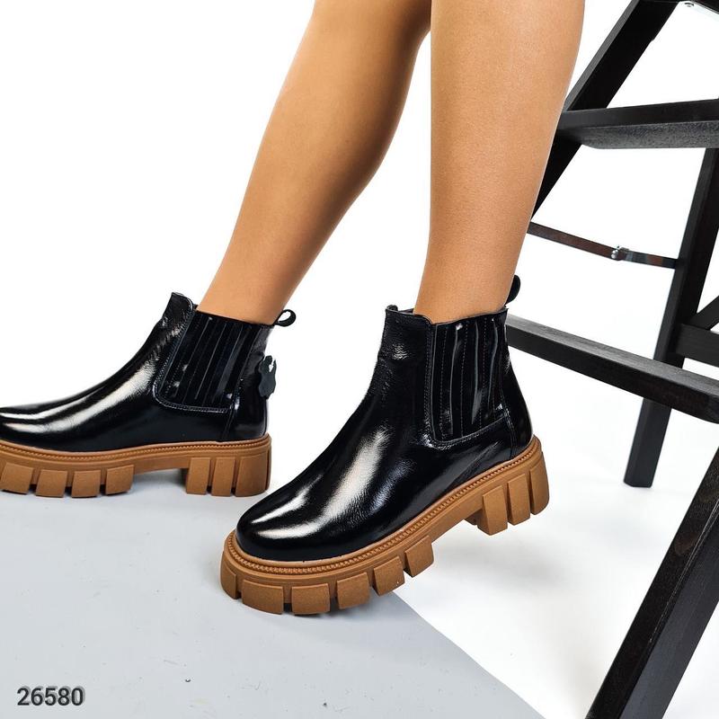 ✅ В НАЛИЧИИ 38, 38 ✅ Код 26580 Ботиночки сезон ЗИМА❄ цвет BLACK материал: НАТУРАЛЬНАЯ ЛАКИРОВАННАЯ КОЖА утеплитель: НАБИВНАЯ ШЕРСТЬ (в составе 40-60% натуральная шерсть) высота от пятки 11,5 см подошва сзади 5 см подошва спереди 3 см маломерят 38= 24 см Ціна 1150