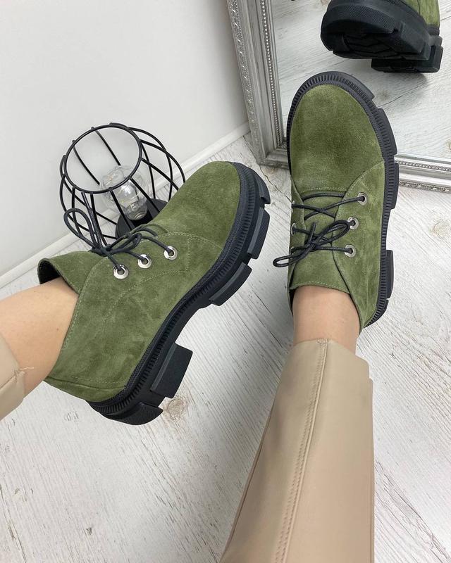 New collection 💫 ✔️под заказ (Отшив 8 раб.дней,есть налож.платеж по предоплате 200 грн остаток по готовности ) ▪️к заказу прикреплять фото код 891 Ботинки Натуральный замш Подклад байка высота ботинка 12 см подошва 2.5/4.5 см Цвет: хаки 36-23.5 см 37-24 см 38-24.5 см 39-25.5 см 40-26 см