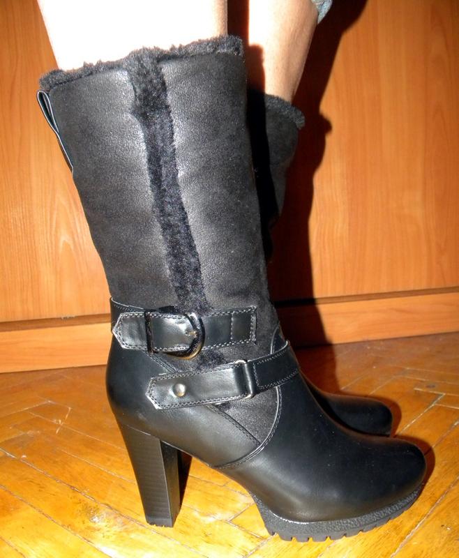 Підходять на ногу 25-25,5 см Висота каблука: 9 см Матеріал: шкірзамінник, всередині - штучне хутро.
