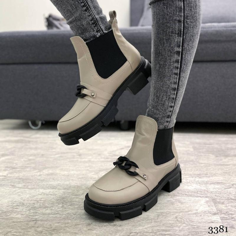 ✔️в наявності 36 37 39 40 Черевики жіночі зимові з ланцюгом Код: 3381 Колір бежевий Матеріал верху: натуральна шкіра Висота від п'яти 10,5см Підклад: набивне хутро Підошва 3,5-5,5см Україна У розмір 36р. - 23,5см 37р. - 24 см 39р. - 25,5 см 40р. - 26см