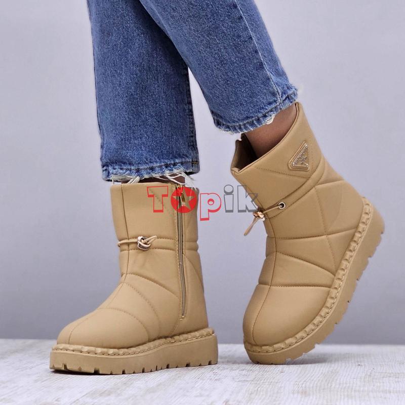Сапоги женские зимние темно бежевые на молнии, экокожа чоботи жіночі зимові темно бежеві е...