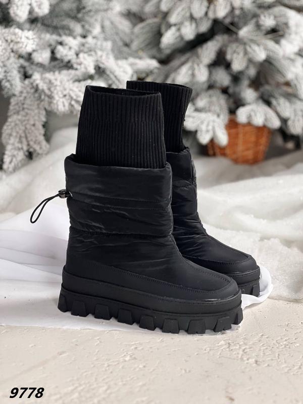 Код 9778 Дутики Сезон зима Материал плащевка Внутри натуральная шерсть Цвет черный Высота подошвы 5,5 см Высота от пятки 18,5 см Размер по сетке: 36 - 23,5 см 37 - 24,0 см 38 - 24.5 см 39 - 25,0 см 40 - 26,0 см