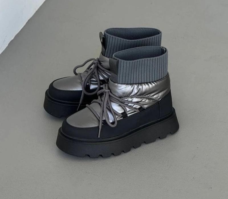 Антискользящая подошва. Водонепроницаемые PU кожа. Подошва 3 см по уду 4 см. Высота от пятки 14 см. Зима в середине натуральный мех 70% шерсти. код 3080