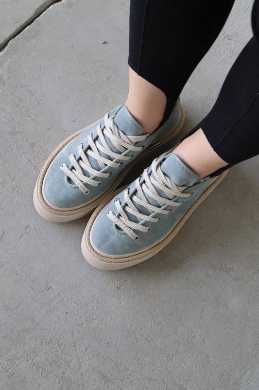 Матеріал верху: натуральна замша Матеріал підкладки: натуральна шкіра + латексна устілка (виймається) Підошва: 3.5/4 см Колір ice green Матеріал підошви: поліуретан Розмірний ряд 36-41