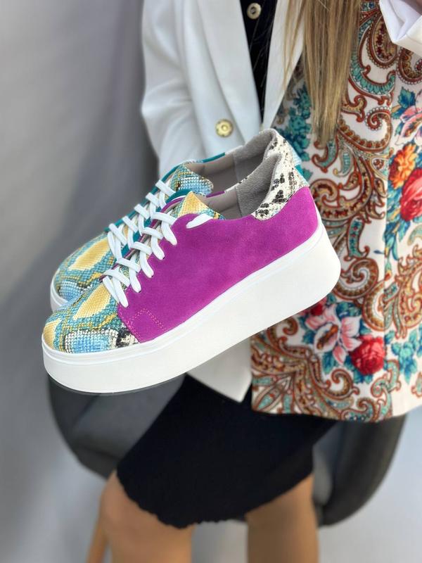 В наличии и пошив в любом цвете замши и кожи. У нас есть широкая палитра кожи с тиснением под рептилию, аллигатора, крокодила, флотары, арабаты. Некоторые эксклюзивные варианты присутствуют в ограниченном количестве, уточняйте при заказе. Также можем пошить сумочку или рюкзак в цвет. Кеди 1017 Имеется цветная подошва Внутри может быть кожа, байка, мех, кирпичик+300грн Размер 36-41 36-23,5 37-24 38-24,5 39-25,5 40-26 41-27 Цена может качаться в зависимости от курса $