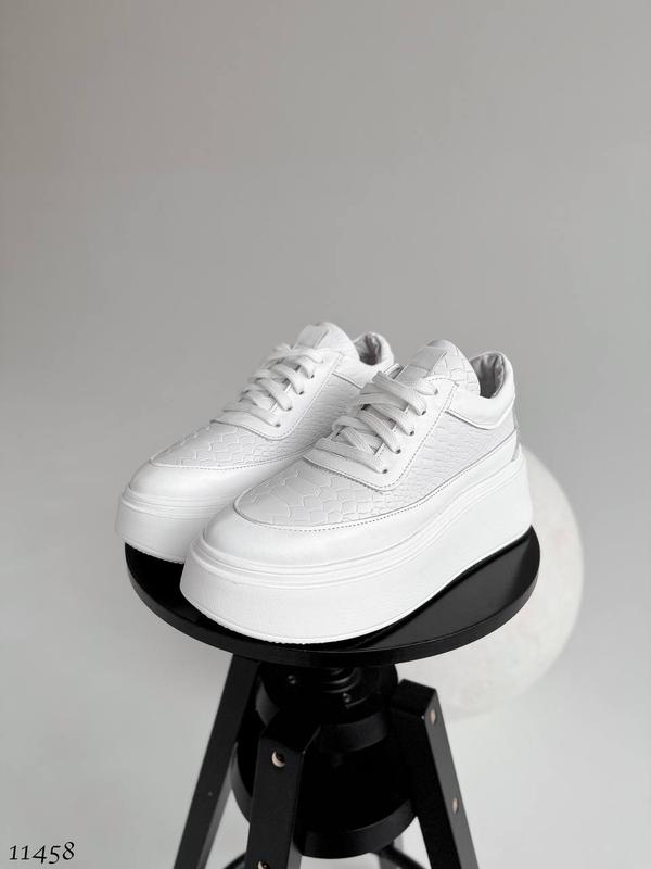 Код 11458 ☑ Підвищені кеди =NA= на весну ☑ колір: БІЛИЙ ☑ НАТУРАЛЬНА ШКІРА (рептилія) ☑ всередині: шкірпідклад ☑ висота від п'яти 6 см ☑ підошва: 4см/ позаду 5,5 см ☑ вироб. - Україна У разі відсутності розміру в наявності доступні під замовлення 36= 23,5 см 37= 24 см 38= 24,5 см 39= 25,5 см 40= 26 см Вага 36р = 660 г