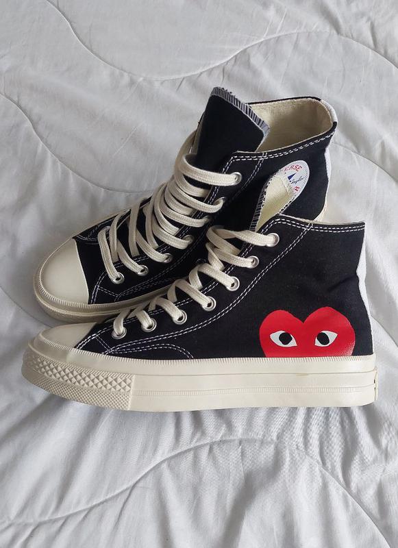 Классные женские и мужские высокие кеды converse all star x comme des garcons black high ч...