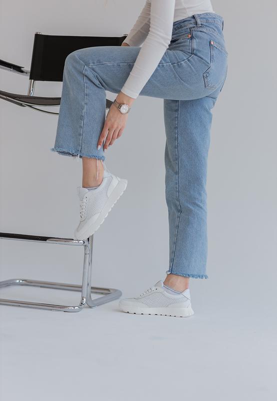 Классические белые перфорированные кроссовки женские из натуральной кожи.модель: vm-om-16b...