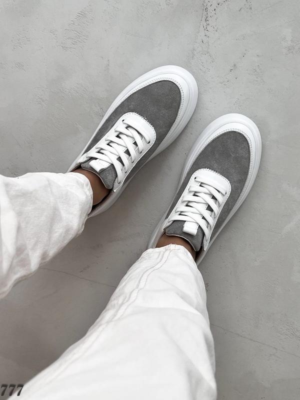 новинка❤️ Жіночі кеди Арт.777 Колір - Білий+ сірий Матеріал - Нат.шкіра +нат.замша Всередині - Нат.шкіра Підошва - 4см На середню стопу Виробник: Україна 36-23.5см 37-24см 38-24.5см 39-25,5см 40-26см