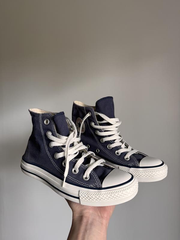 Кеди Converse All Star синього кольору. Стан чудовий видно на фото (по підошві, устілці, задніках). Розмір теж можна побачити на фото (36 EUR 22,5 см). Звертайтесь, з радістю відповім на ваші питання.