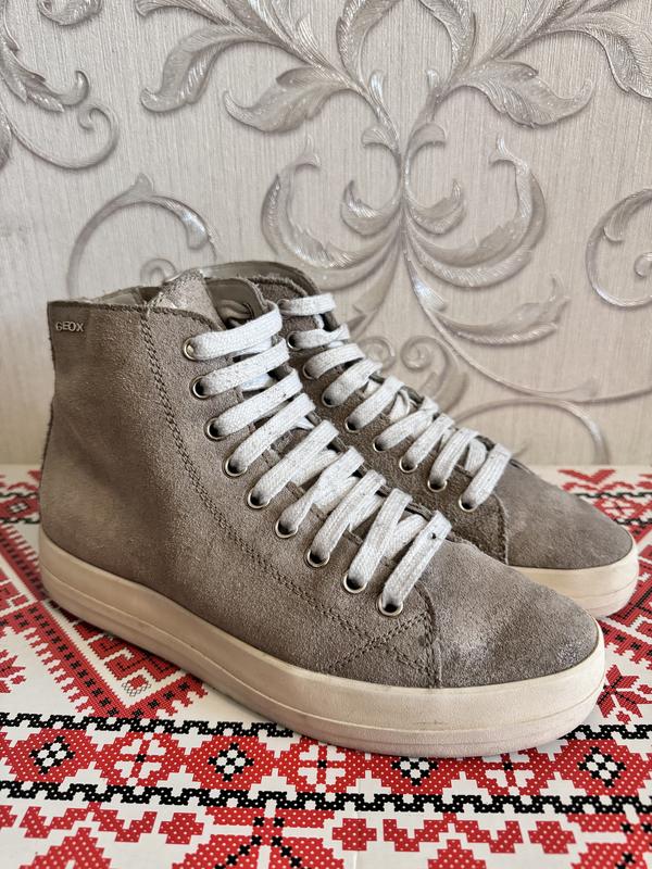 Р. 37-38 Стильные женские высокие кеды на платформе из натуральной бежевой замши Geox В очень хорошем состоянии. Длина постельки 24,5 см Высота задника от пятки 11 см Толщина подошвой 3,5 см Кеды сочетают в себе комфорт и модный дизайн, идеально подходя для повседневной носки. Модель оснащена удобной шнуровкой и молнией для легкости надевания и снятия. Эти кеды станут прекрасным дополнением вашего гардероба, добавляя нотку элегантности и комфорта в ваш образ. Смотрите другие объявления и экономьте на доставке. При покупке нескольких вещей скидка.