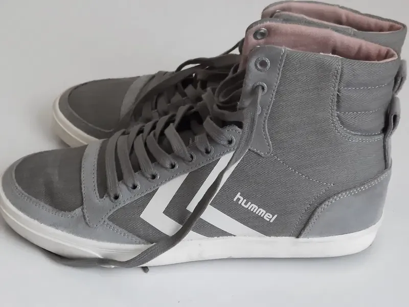 Кеды Hummel, оригинал, серые, с различными вставками из замша и кожи. Длина по стельке 24,5 см. Выгуляны несколько раз. Продаю, что бы не занимали место в шкафу. Не промокают, высокие, подойдут для холодов. Удобные, выглядят круто. Состояние 9 из 10-ти.