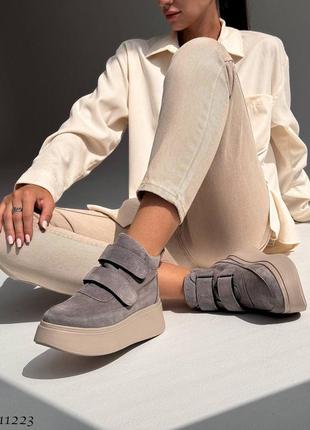цвет: СЕРЫЙ НАТУРАЛЬНАЯ ЗАМША внутри: байка высота от пятки 9 см подошва: спереди 3,5 см позаду 5 см производство - Украина 36= 23 см 37= 23,5 см 38= 24,5 см 39= 25 см 40= 25,5 см Вага 36р = 700 г