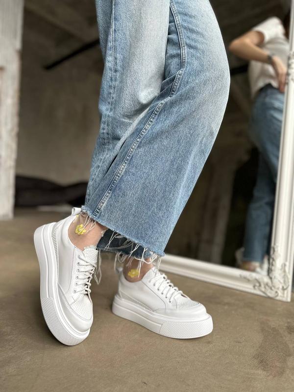 Кеды, к063, белый, натуральная кожа под рептилию