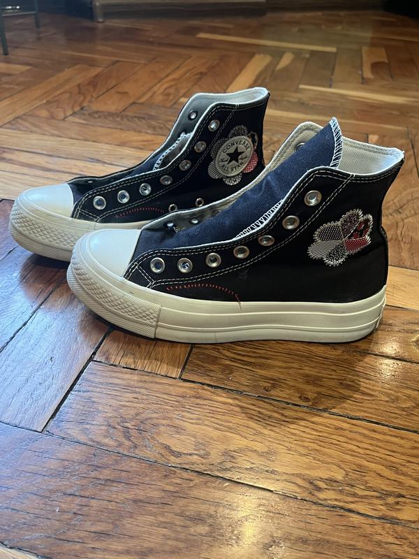 оригінальні кеди converse в хорошому стані з шнурівками на фото просто немає але вони є! круті чорні але не банальні конверси з цікавим дизайном більше фото якщо треба скину в особисті повідомлення. я їх купувала за 4500 але майже не носила бо малуваті трішки. довжина устілки 22см але на 22,5 буде норм. можливий торг)