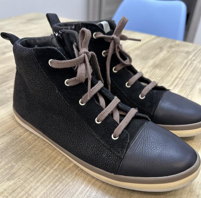 Дуже зручні та якісні! Обожнюю цей іспанський бренд! Зроблені з телячої шкіри різної фактури. Взуття має характерний закруглений носок і унікальну гнучку підошву з круглими гумовими вставками, що імітує відчуття ходьби босоніж. Взувала на стопу 24,5.